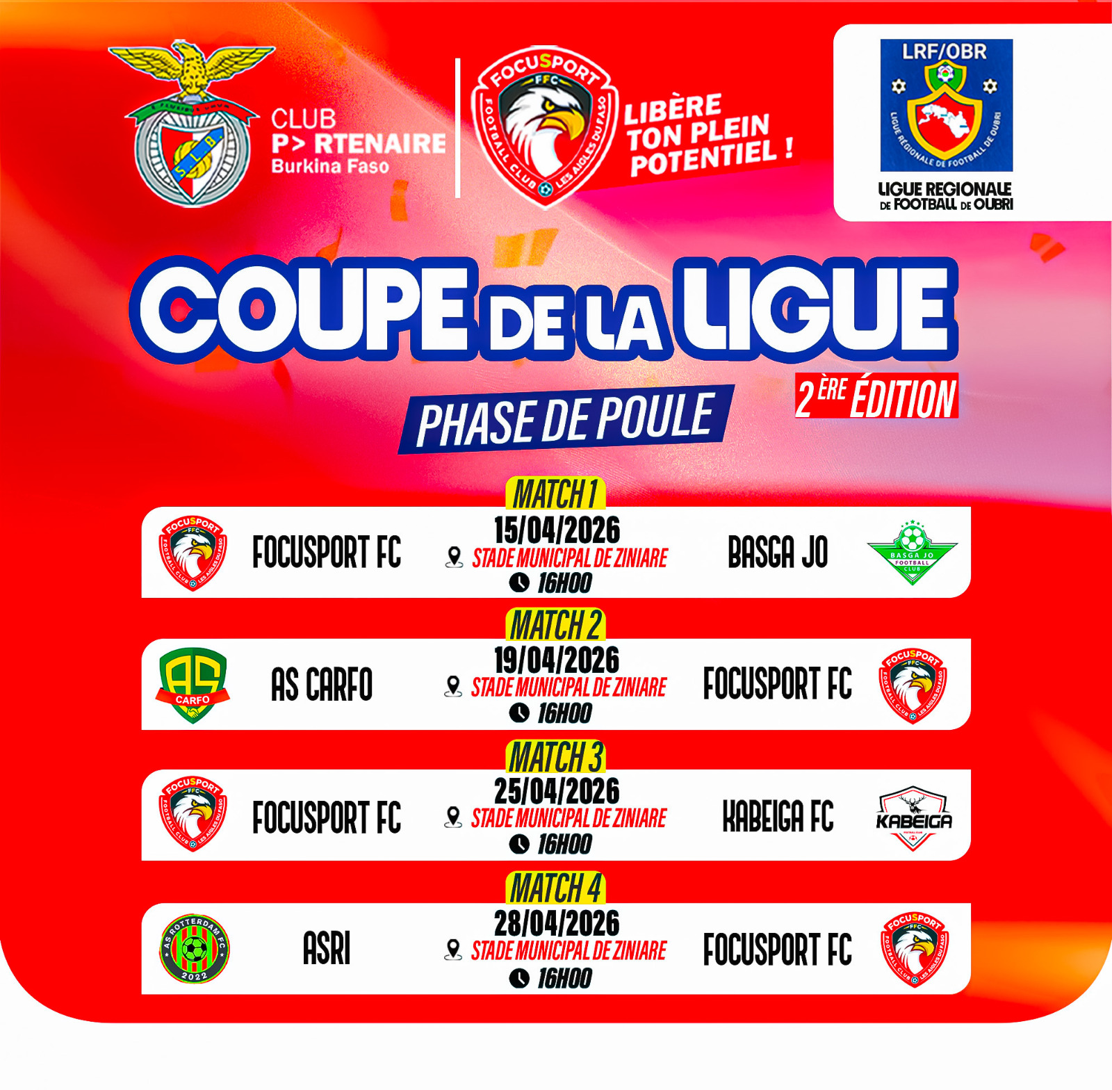 Samedi 14 mars 2026, FocuSport FC a réalisé une excellente opération en s’imposant 2 buts...