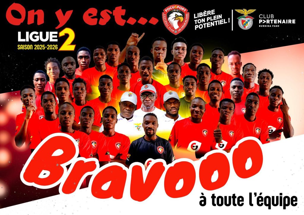 Monter en Ligue 2 est une étape capitale dans la construction de FocuSport FC. Cela signifie plus de compétitivité, plus de visibilité et une exigence encore plus forte. Mais c’est aussi une formidable opportunité de continuer à écrire notre histoire, de mettre en lumière nos jeunes talents et de consolider notre modèle Étude – Sport unique au Burkina Faso.